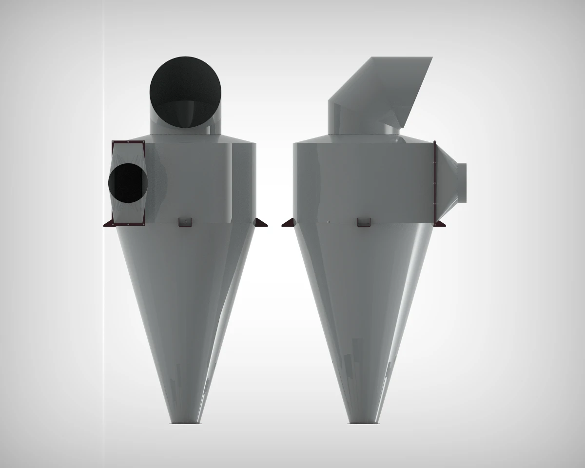 Cyklon odpylający został zbudowany w celu oddzielenia przenoszonej pneumatycznie frakcji lekkiej od powietrza (oczyszczania gazów z cząstek stałych). Frakcja lekka będąca zwykle odpadem składa się z dwóch podstawowych składników tj. zanieczyszczeń względnie dużych np. plewy, części łodyg i liści, drobne nasiona chwastów, niedorozwinięte nasiona danego gatunku oraz bardzo drobnego pyłu.