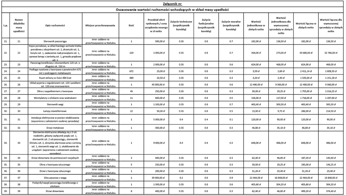 Syndyk masy upadłości zaprasza do składania ofert na zakup ruchomości stanowiących wyposażenie chlewni – zlokalizowanych w miejscowości Nielub, w powiecie wąbrzeskim, w gminie Ryńsk .